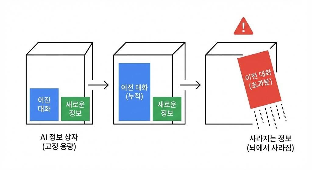 AI는 매순간마다 정보를 담을 수 있는 상자의 크기가 정해져 있습니다.
